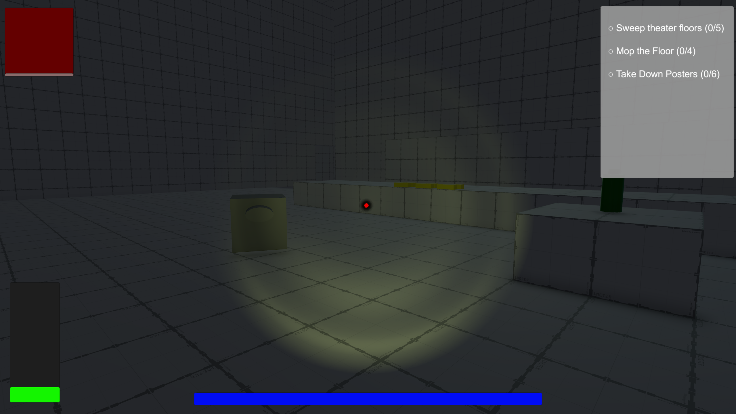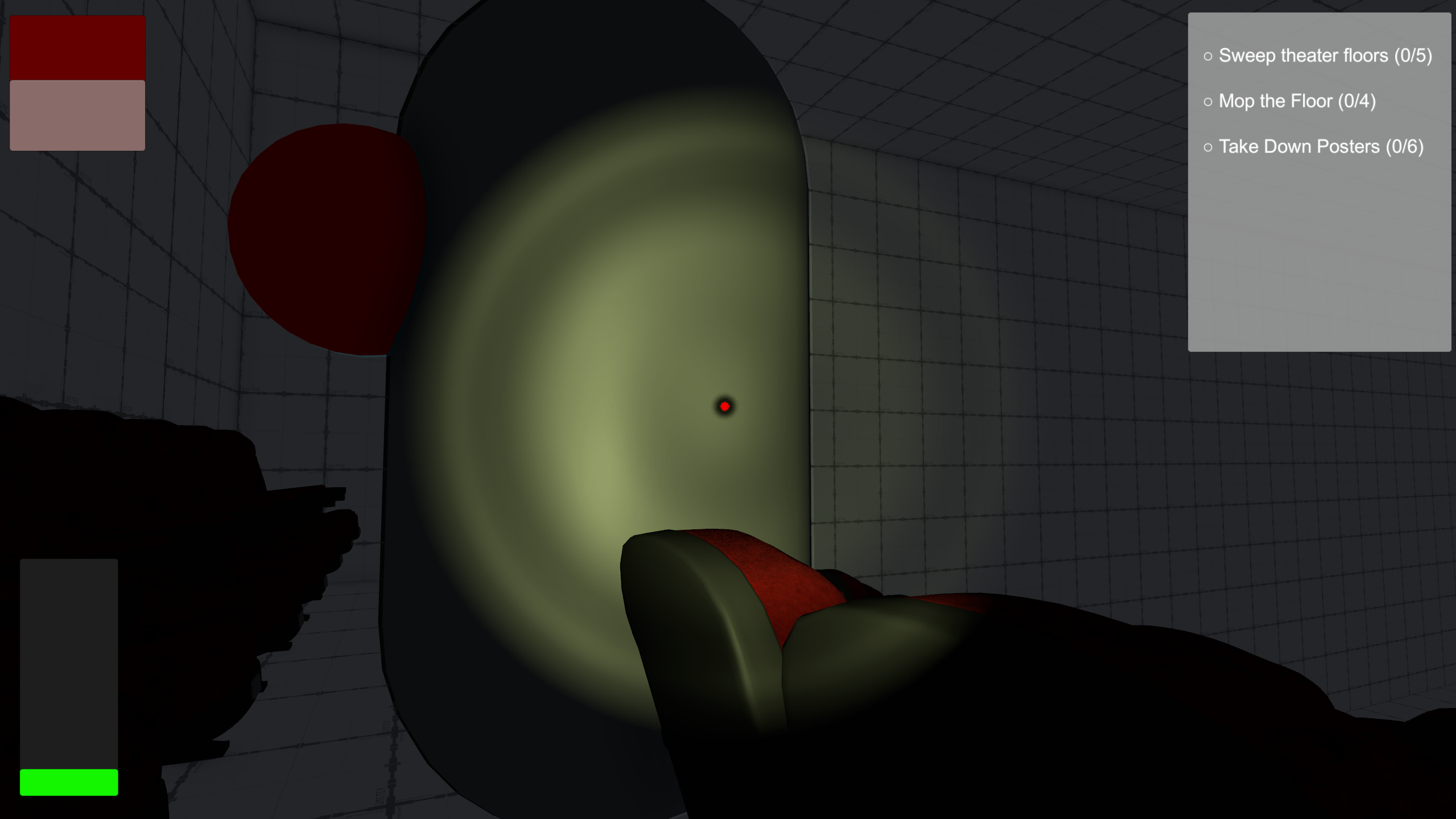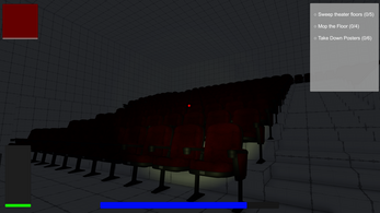 You play as a night watchman tasked with securing a movie theater by completing various duties, such as sweeping the floors, cleaning puddles, and removing old posters. However, maintaining the theater is only part of the challenge. A mascot animatronic—based on a famous horror movie clown—watches you throughout the night. At times, it may begin to pursue you, and it’s your responsibility to keep it under control.